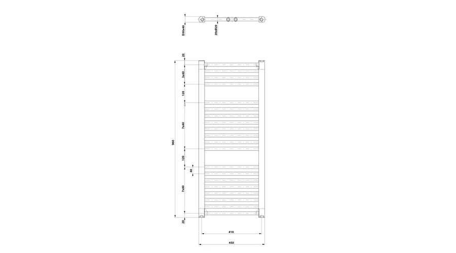AQUALINE DIRECT Fürdőszobai radiátor, egyenes, 450x960mm, 447W, fehér (ILR94T)