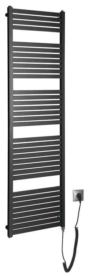 AQUALINE TONDI-E elektromos fürdőszobai radiátor, 450x1690mm, 600W, matt fekete (DE446T)