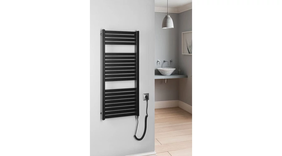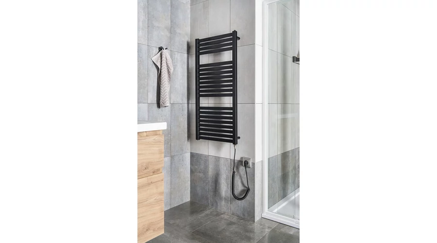 AQUALINE TONDI-E elektromos fürdőszobai radiátor, 450x970mm, 300W, matt fekete (DE456T)