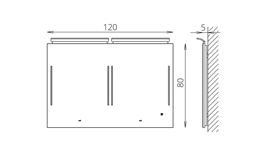 - Világítás - 55 cm-es LED lámpa (850lm, 10W ), oldalt integrált LED világítás 680lm, 8W), jelenlétérzékelő kapcsolóval, fényerőszabályzó érintőgombbal, szerelhető, laminált hátlappal
