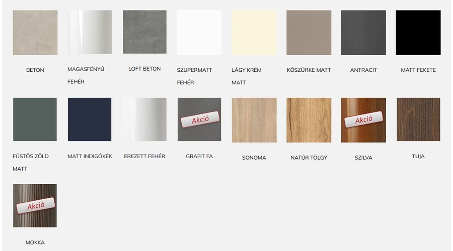 - Anyaga: Vákuumpréselt MDF front és oldalak, laminált lapok