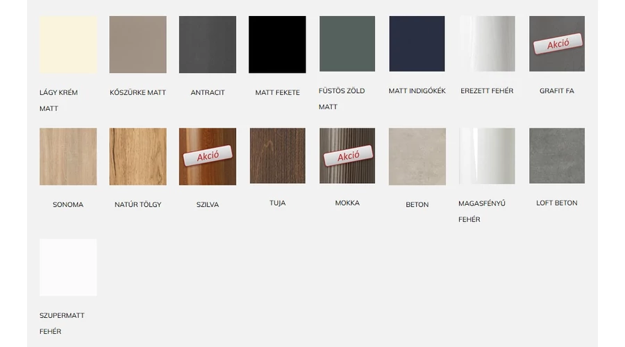 - Front: Vákuumpréselt MDF front és oldalak, laminált lapok